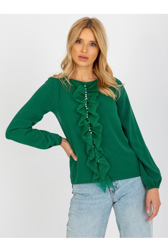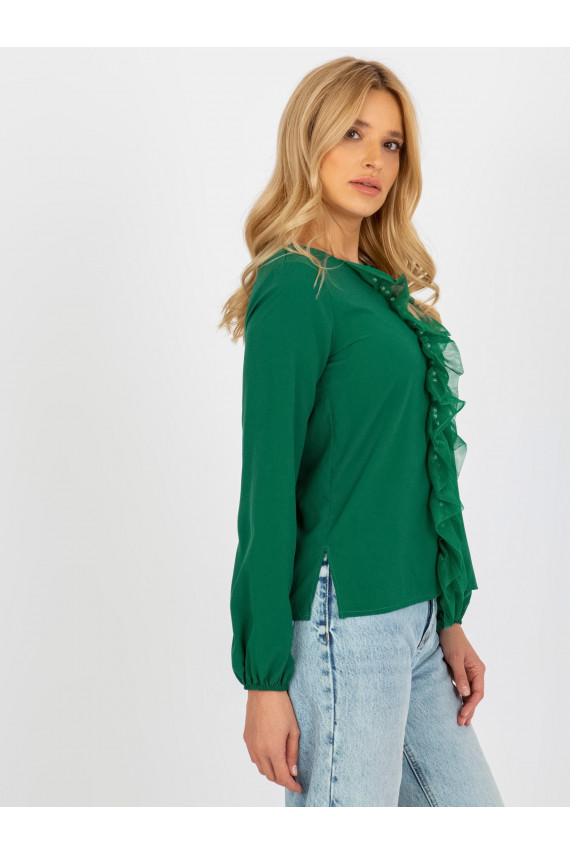 Tumeroheline aplikatsiooni ja võrguga pidulik pluus.