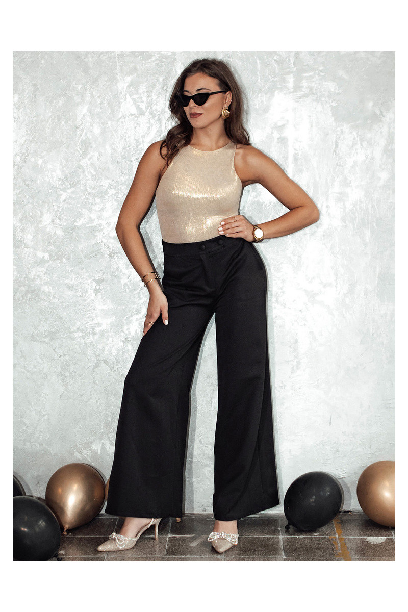 Klassikalise lõikega laiad püksid, mis rõhutavad figuuri ja lisavad rafineeritust. Ideaalne valik ametlikeks koosolekuteks ja õhtusteks väljasõitudeks. Kvaliteetsetest materjalidest valmistatud need pakuvad mugavust ja stiili ühes. Need sobivad iga stiiliga.