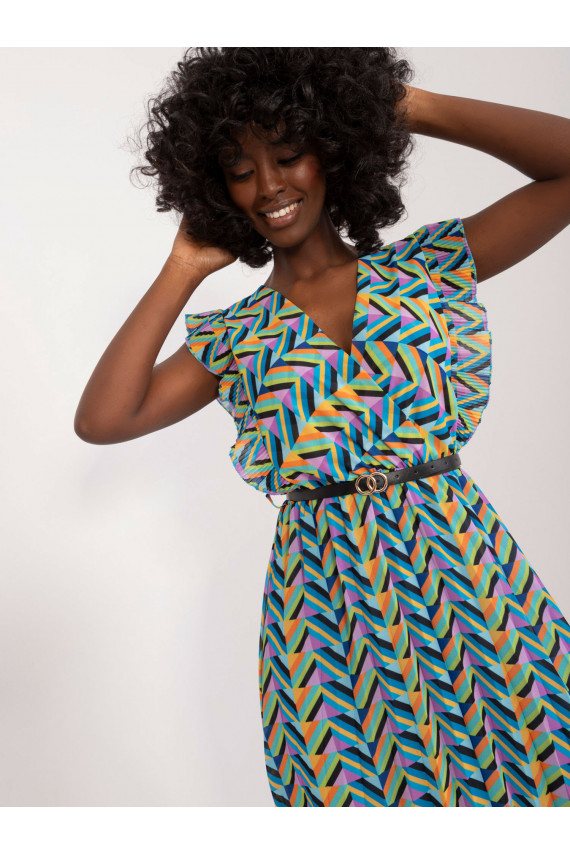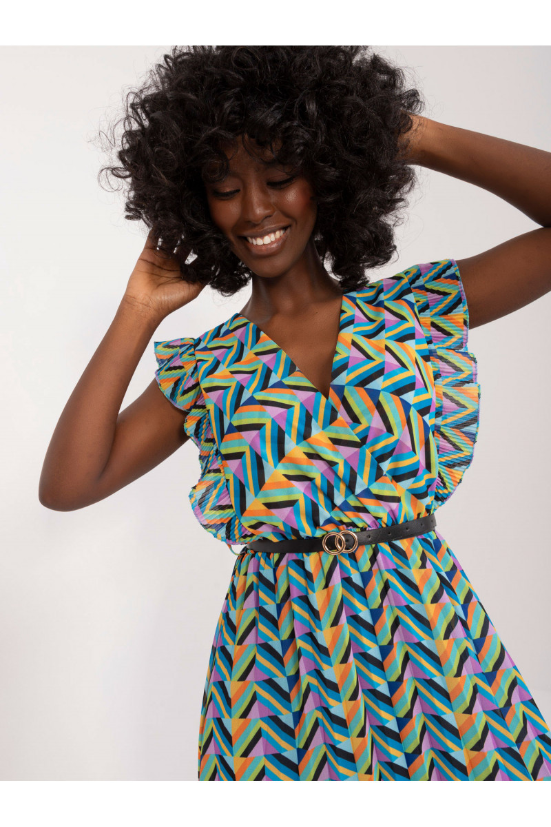 Modell kannab suurust one. Modelli mõõdud: kõrgus 168 cm, rind 82 cm, vöö 62 cm, puus 93 cm.