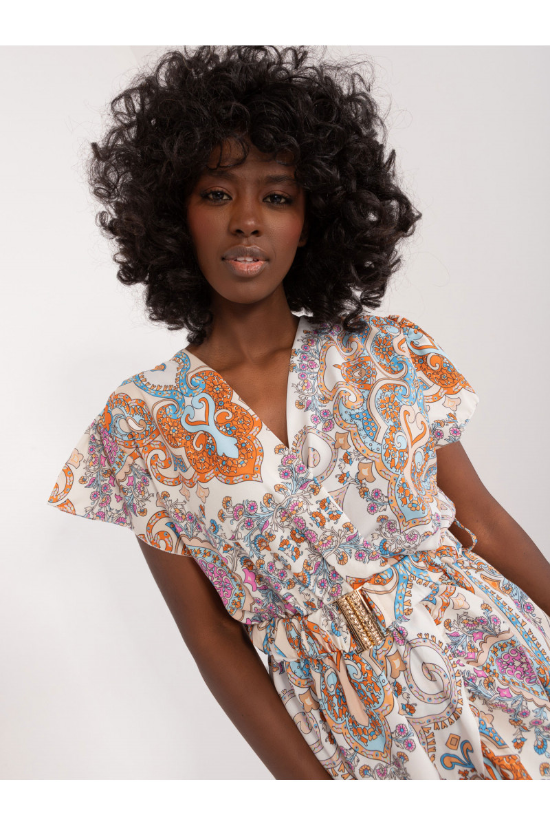 Modell kannab suurust one. Modelli mõõdud: kõrgus 168 cm, rind 82 cm, vöö 62 cm, puus 93 cm