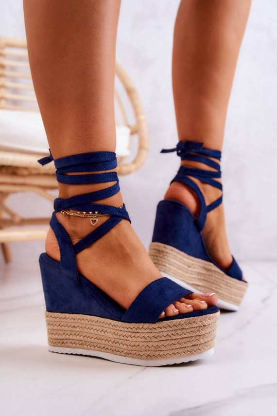 Kerged nööritavad Platvormiga sandaalid tumesinist värvi Marriett