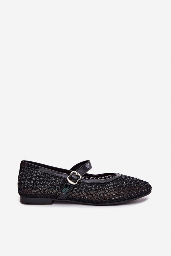 Dekoratiivsed naiste ballerinad rihmade ja pandlitega musta värvi Avirae