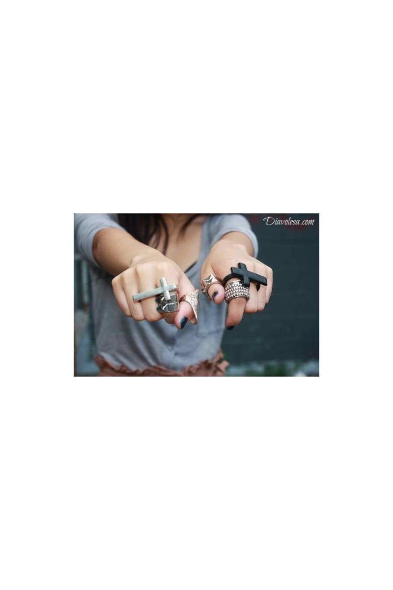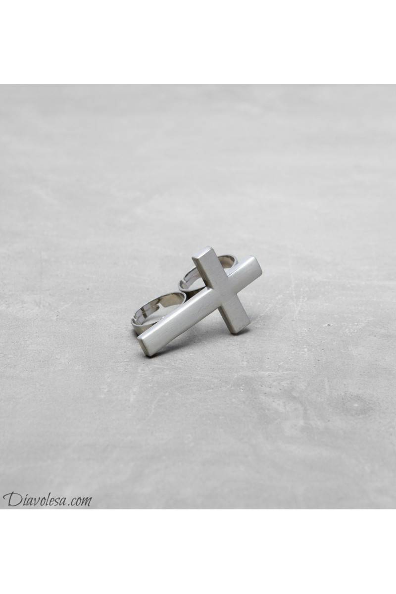 Žiedas su kryželiu, kuris mūvimas ant dviejų pirštų.