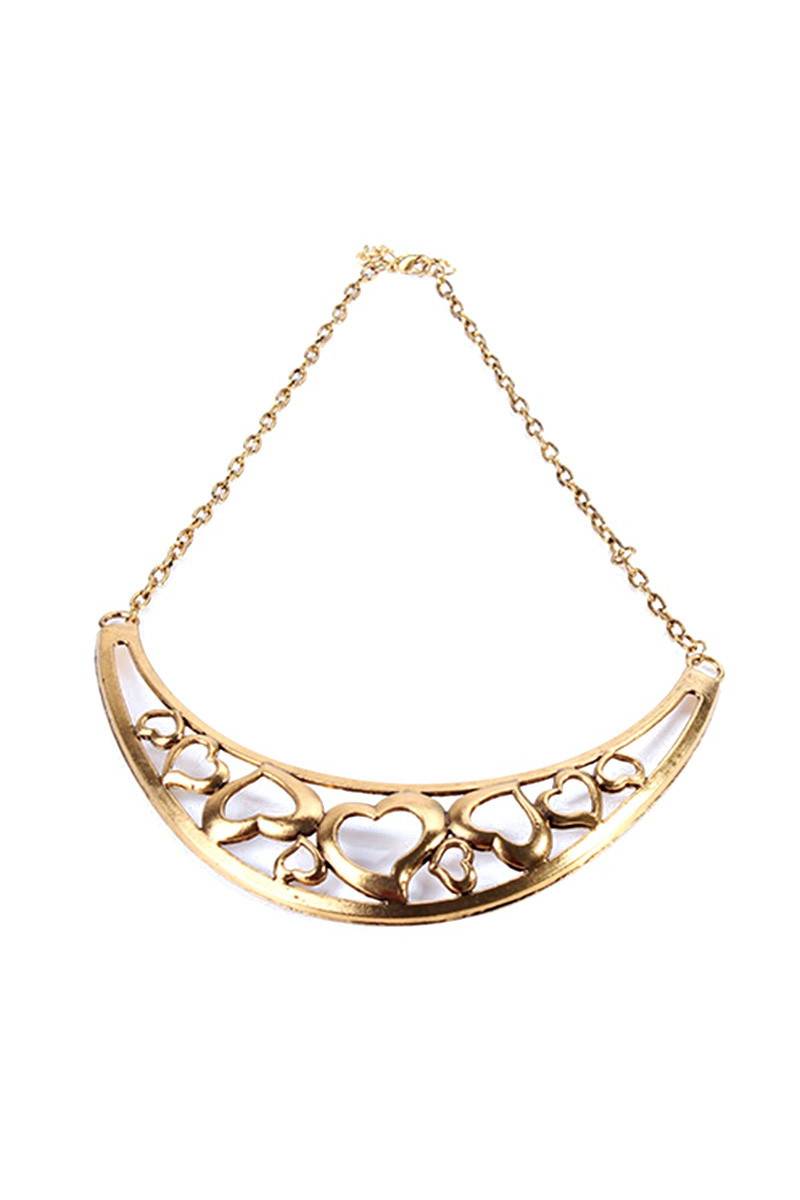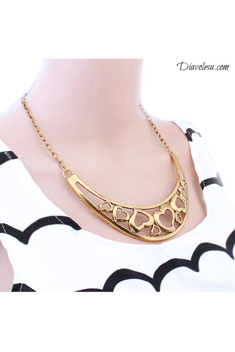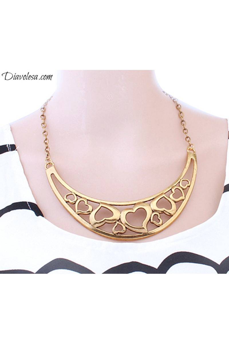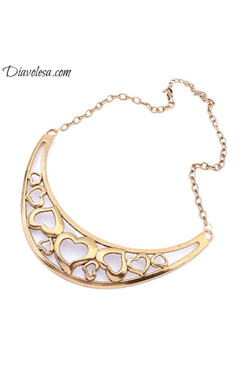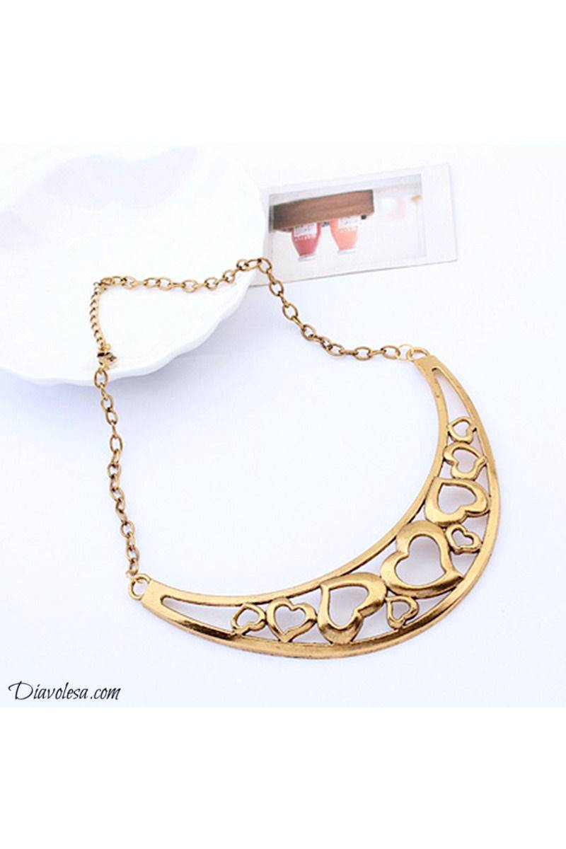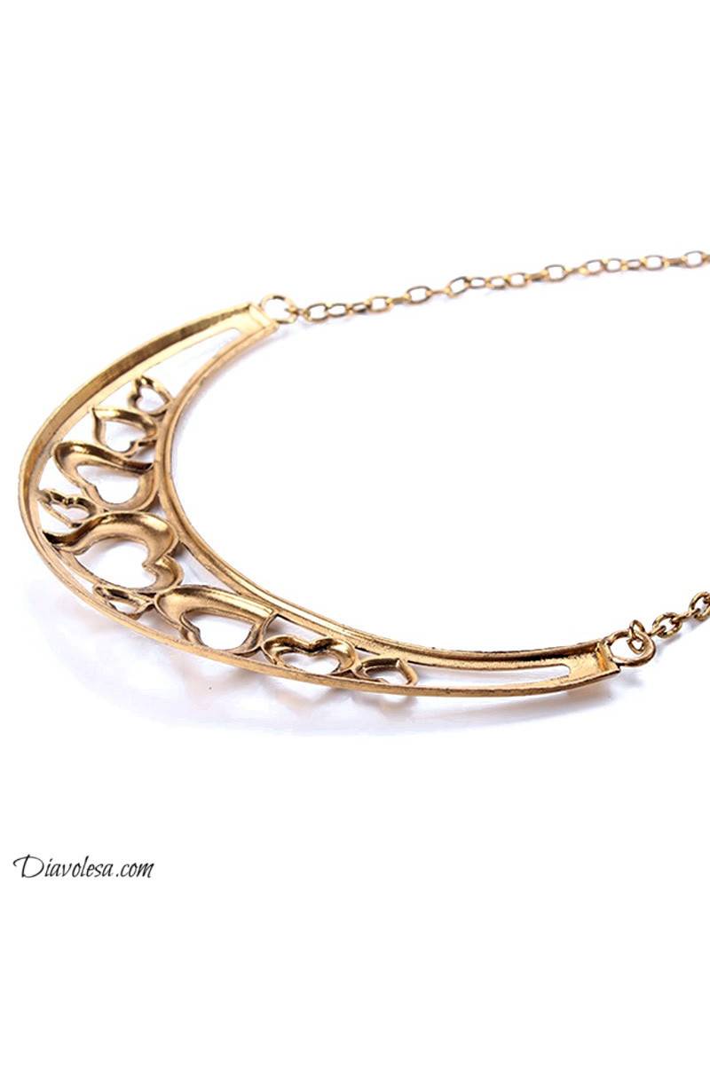 Kaklo papuošalas yra pusmėnulio formos, pagamintas iš metalo -