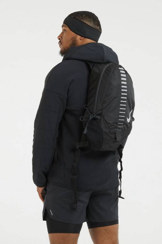 Nike Run Commuter Backpack in Black. Perfect for race day, the Nike Run Commuter Backpack 15L In Black features a stabilized design that reduces movement while you run. Mesh panels at the back add breathability so you can run in comfort, mile after mile. Side cinch straps help secure the backpack to your body. A hydration tube clip and internal pocket for a hydration bladder help you stay hydrated while you're on the run.
