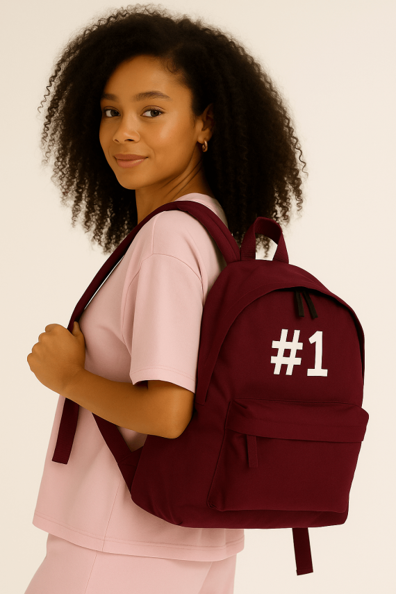 Stiilne lihtne bordoopunane seljakott "Number 1"