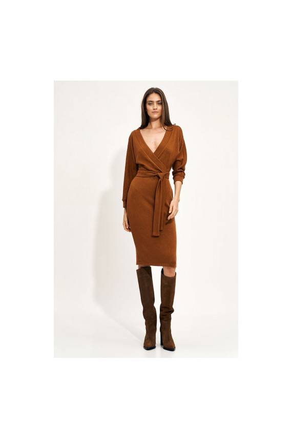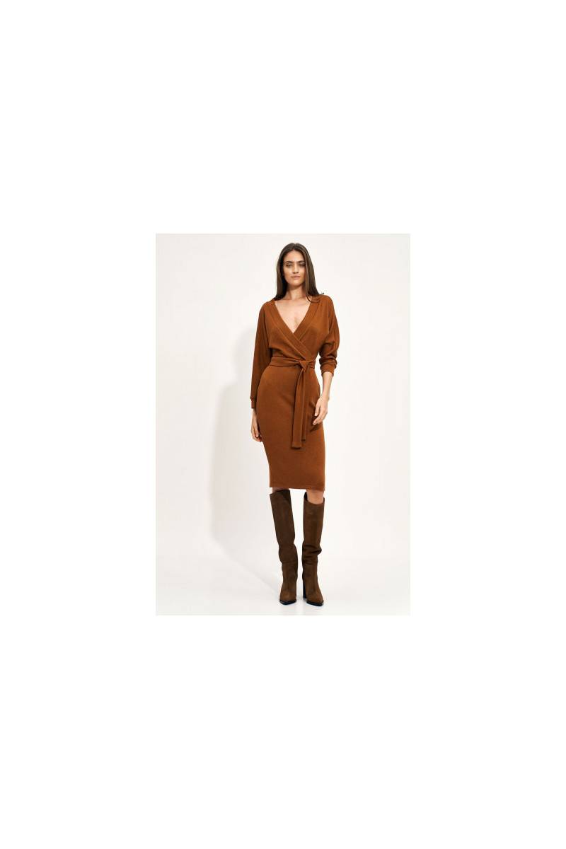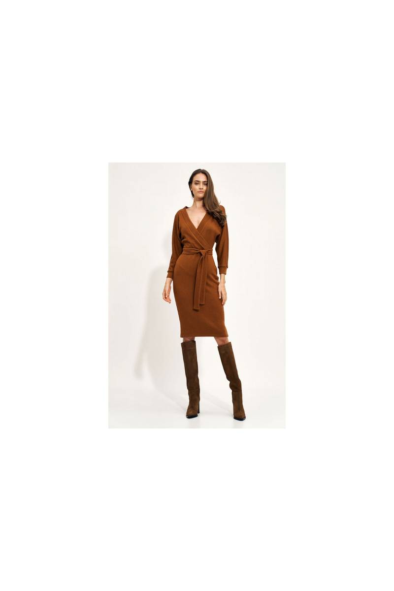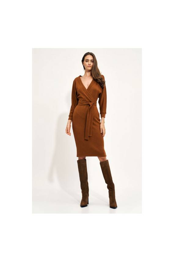 Fitted midi length envelope Kleit is a comfortable and stylish option for colder days. Its colors will wonderfully brighten autumn styling and add freshness to it, and the tailored cut with binding at the waist will emphasize feminine qualities. The Kleit is perfect for meetings with friends or for work. It was made of pleasant to the touch knit Materjal:.