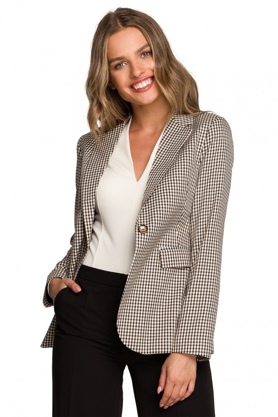 A simple, waist-length jacket in a fine check pattern is an autumn classic that will add a little variety to the office closet and will also work well with jeans on the weekend. The jacket is fully lined.