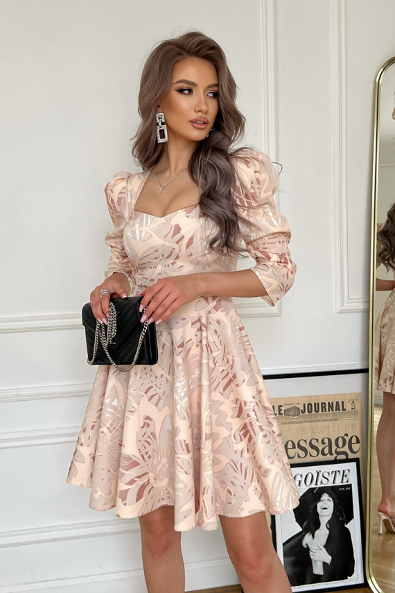 A beautiful spring creation, with an interesting girly cut. The top is fitted, with ruffled sleeves and shoulder buffets. The bottom is short flared. The Kleit benefits from an interesting print on the Materjal:. Kleit is lined, fastened with a covered zipper. Stiilsedl perfectly tailored, refined, will look beautiful for any occasion.