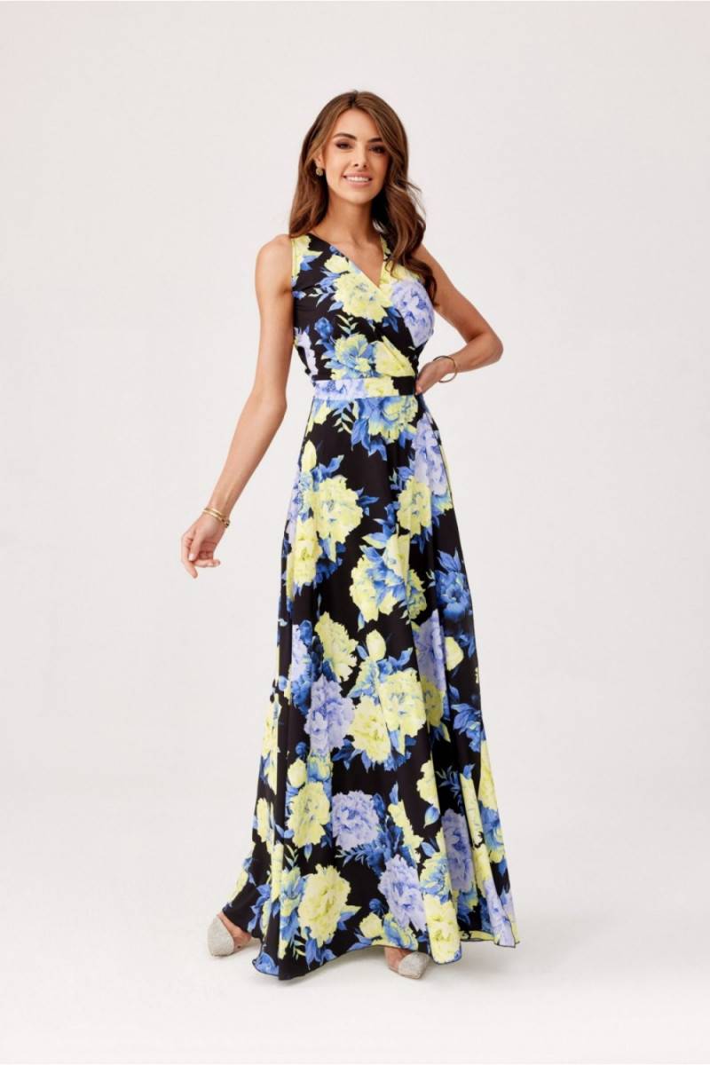 The Kleit is decorated with a floral pattern, which adds lightness and delicacy to the overall look. The neckline of the Kleit is designed with an overlap, which makes the Kleit look very subtle and elegant. The tapering at the waist gives the Kleit a feminine shape, and at the back it transitions into a tied charming bow. The Kleit has no lining. Thick straps give the Kleit a subtle elegance and classiness. The skirt of the creation is skillfully layered, at the same time not revealing the legs, while the whole thing fits perfectly on the figure. The product is made and sewn in Poland.