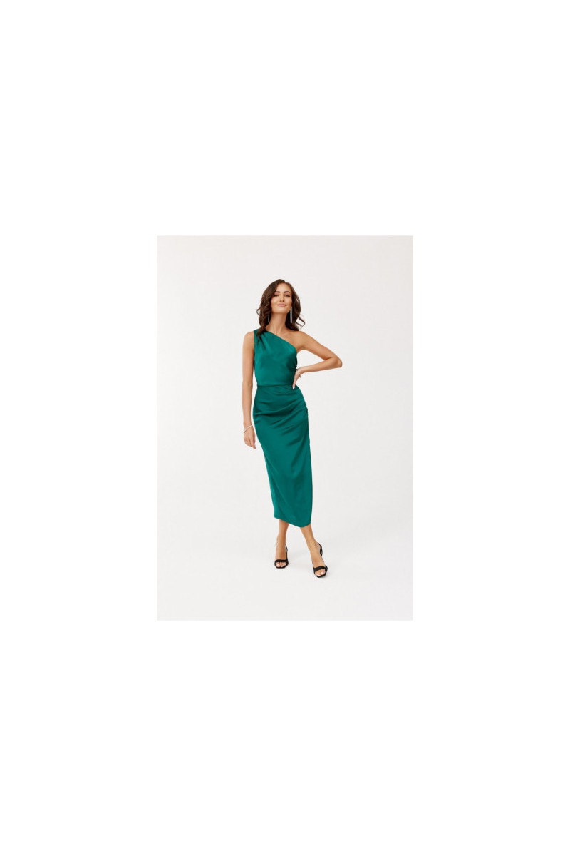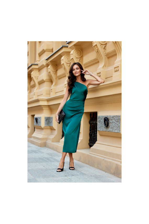 One-shoulder midi Kleit with a subtle slit at the leg is made of delicate satin Materjal:. On the side there is a crease, which perfectly conceals any imperfections. A wide shoulder strap with creases on one shoulder gives it a unique character. Fastened with a covered zipper on the side of the Kleit. This midi Kleit is not only elegant, but also functional. The midi length gives the Kleit a refined, feminine style. This Kleit cut will allow you to feel original by emphasizing your individual style and is sure to attract attention by making you stand out from the crowd regardless of the occasion. The product is made and sewn in Poland.