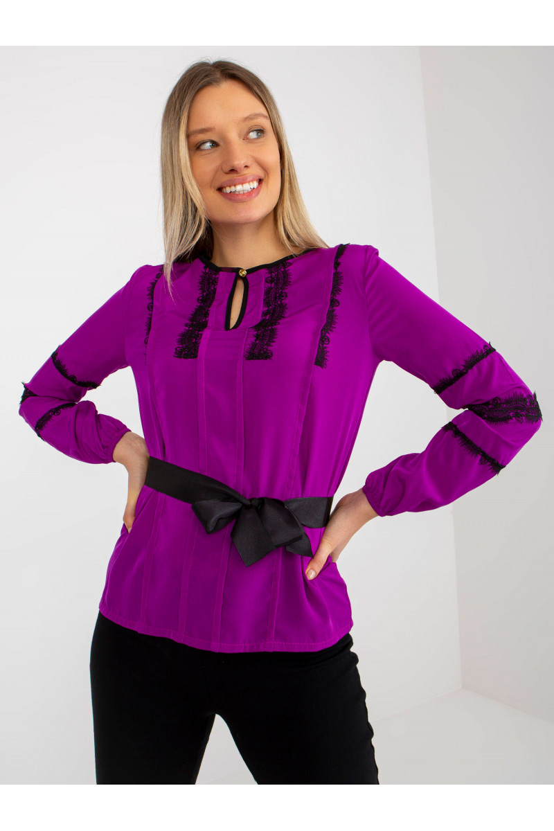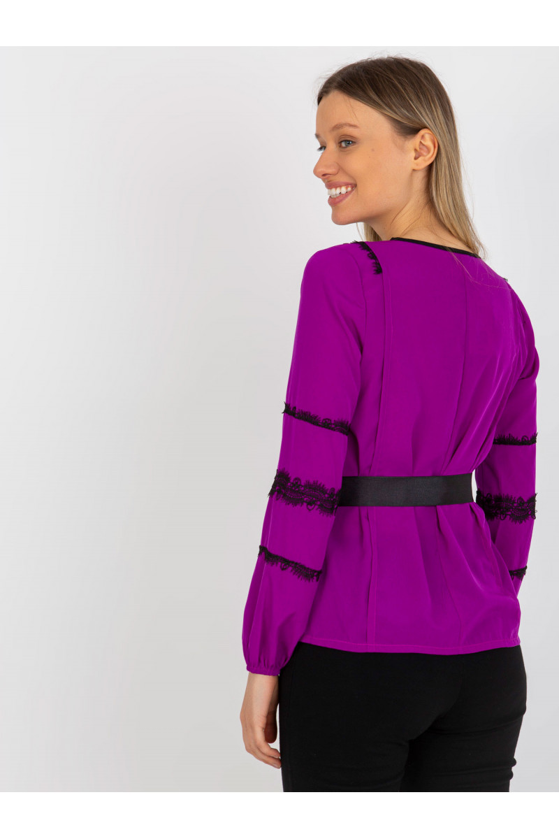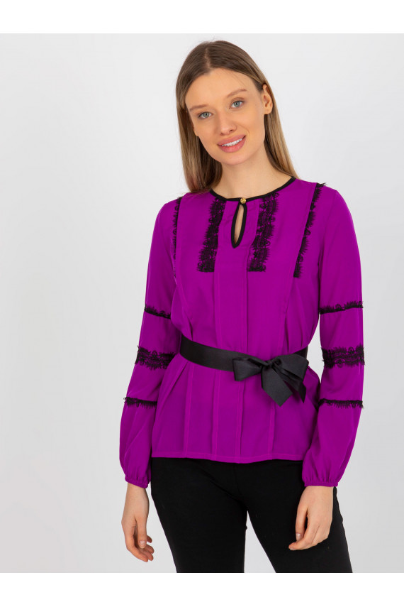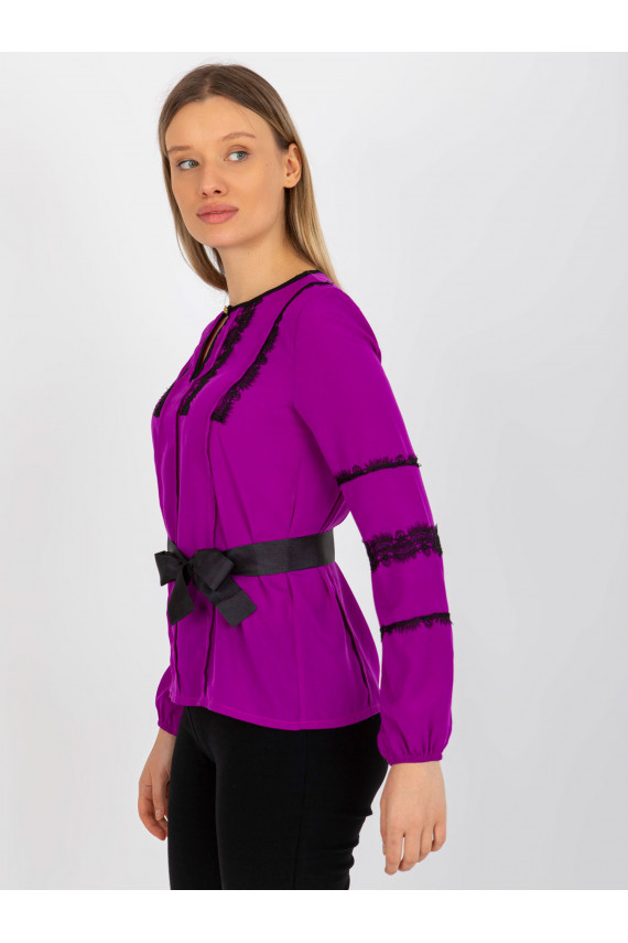 Lilla naiste pidulik pluus pitsi ja köitega.