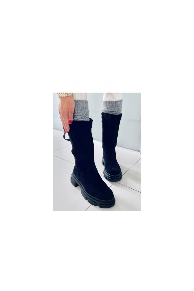 Women's suede boots on a thick sole. They have a timeless cut of the jackboots type, which will always be on trend : ) The has a practical zipper closure for easy putting on. Do not be persuaded any longer! They are made of eco-suede, and the interior is lined with pehme karusnahk.