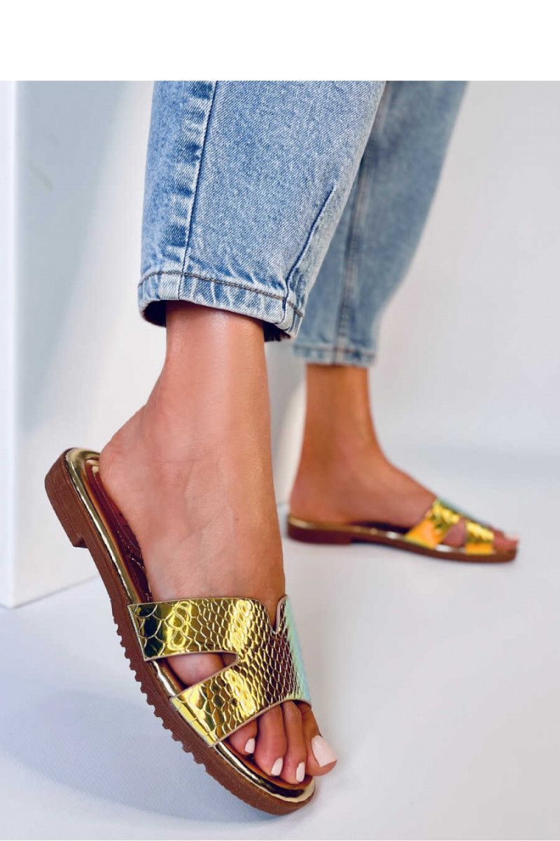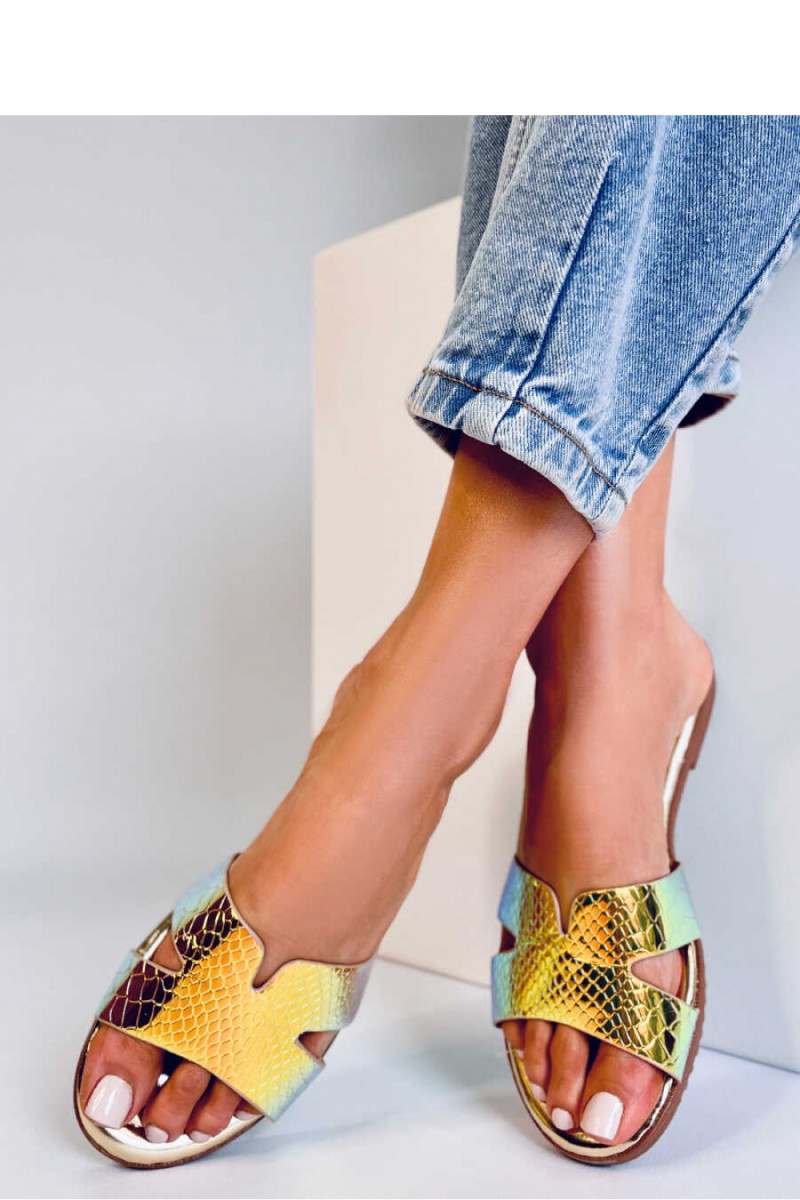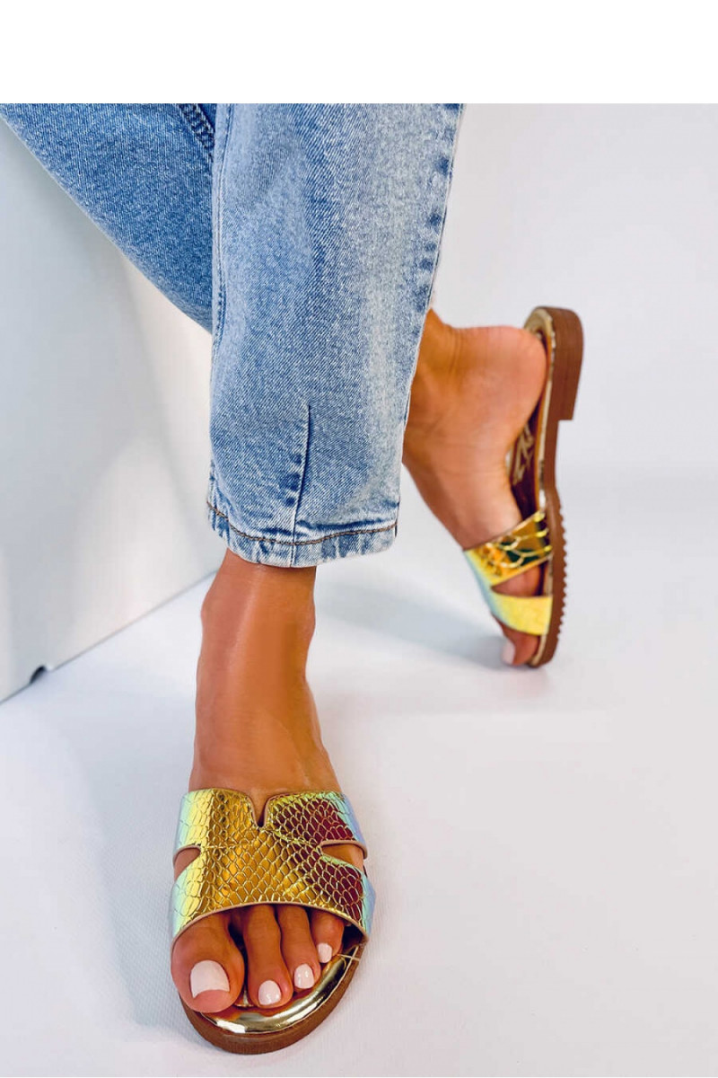Iridescent flip-flops for women. If you follow the latest trends then this with a holographic stripe is sure to catch your attention : ) Moreover, they have a quilted insole in gold color.... Shine and you too this summer! Outer material ? ecological leather.