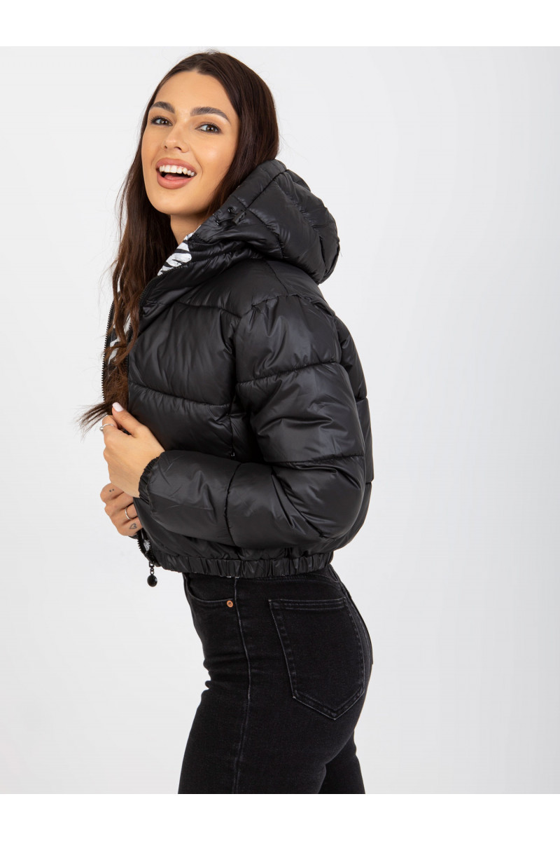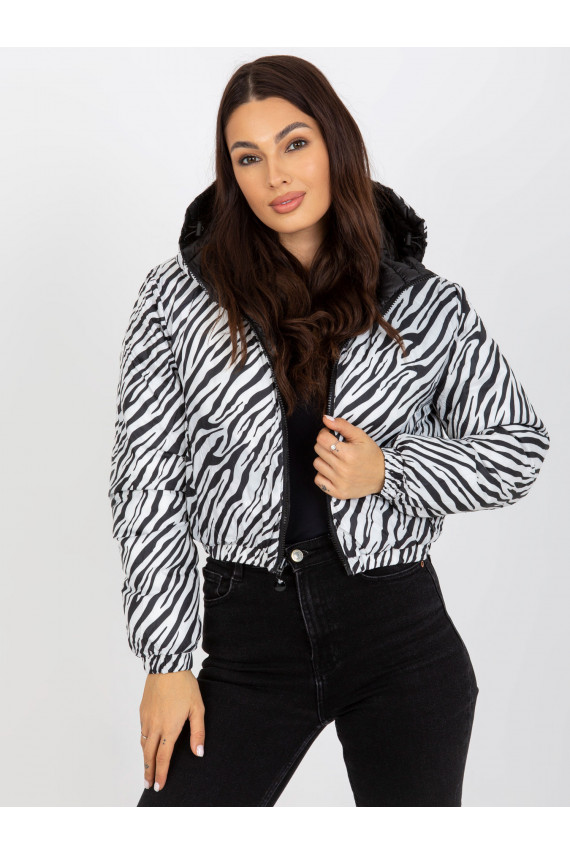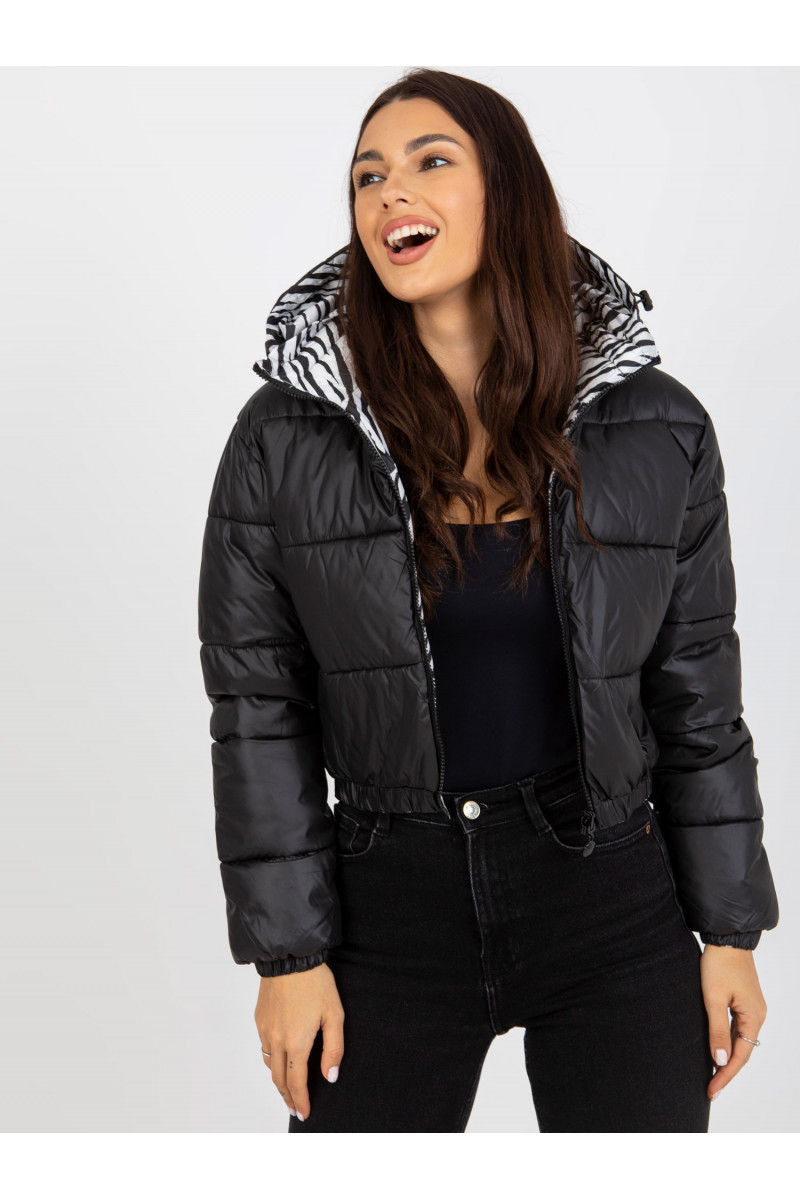 Schwarze doppelseitige Jacke mit Zebra-Steppung.